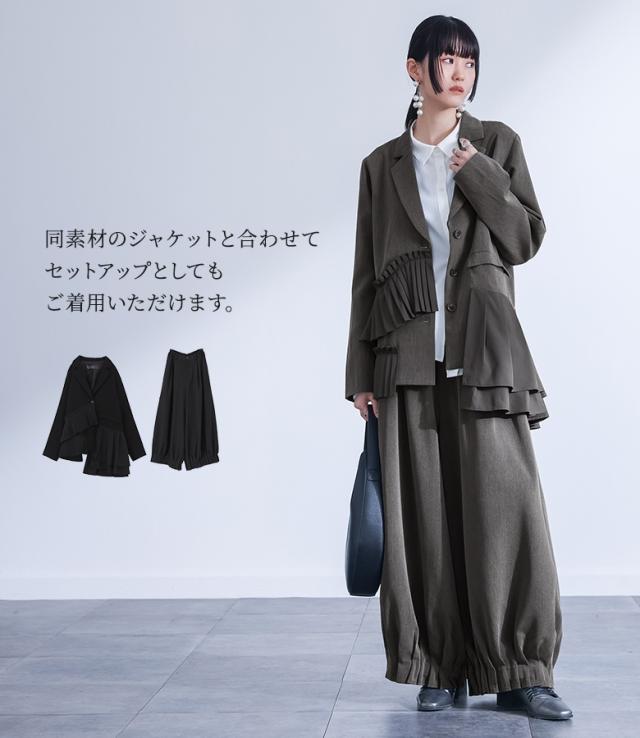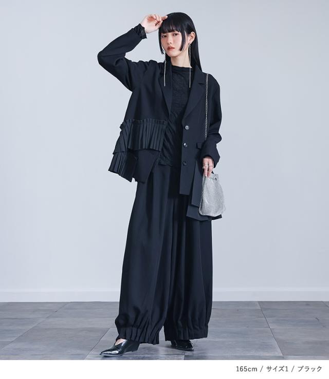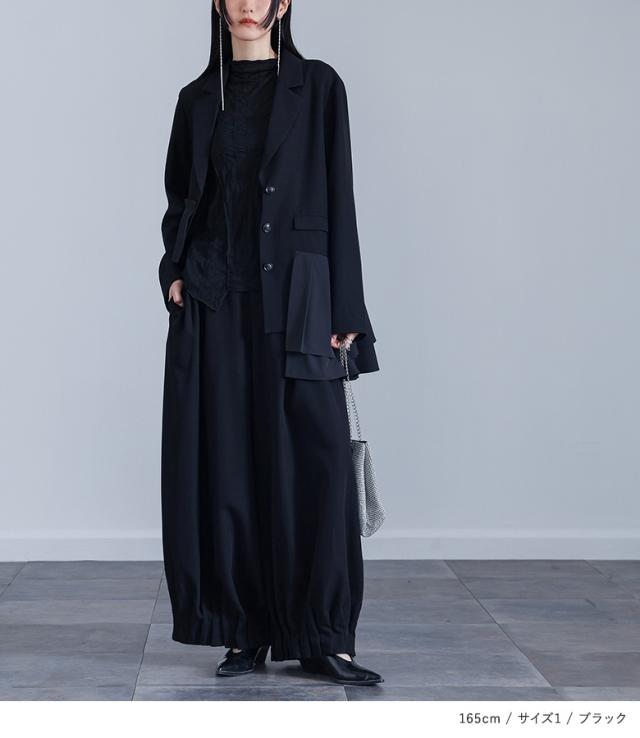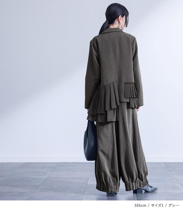 ジャケット 長袖 レディース アウター テーラードジャケット 異素材 アシンメトリー プリーツ フレア オケージョン 秋 冬 春 夏 セットアップ 【TP】 ライトアウター 羽織り テーラード ミディ丈 ミドル丈 アシメ 無地 異素材MIX ドッキング レイヤード 重ね着 ポケット おうちで洗える 裏地付き オールシーズン ロングシーズン フォーマル シンプル モード マニッシュ キレカジ 可愛い系 大人女子 大人可愛い お洒落可愛い 大人カジュアル 上品 きれいめ ベーシック かっこいい お尻が隠れる Sサイズ Mサイズ Lサイズ LLサイズ 3Lサイズ XLサイズ ぽっちゃり 体型カバー 大きいサイズ プラスサイズ 10代 20代 30代 40代 50代 60代 女子会 お買い物 お出掛け 旅行 おしゃれ お洒落 トレンド 流行 パーティー 二次会 結婚式 入学式 卒業式 セレモニー 謝恩会 学校行事 お宮参り 七五三 ママスーツ kOhAKU コハク ラフ スタイリッシュ 洗練 エッジィ osharewalker オシャレウォーカー おしゃれうぉーかー グレー 灰色 ブラック 黒 occasion[ID]15bo0ph[kOhAKU裾ゴムタックワイドパンツ]
