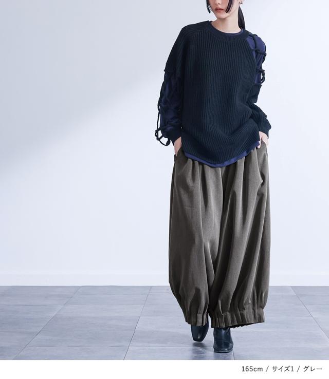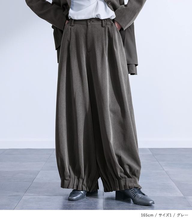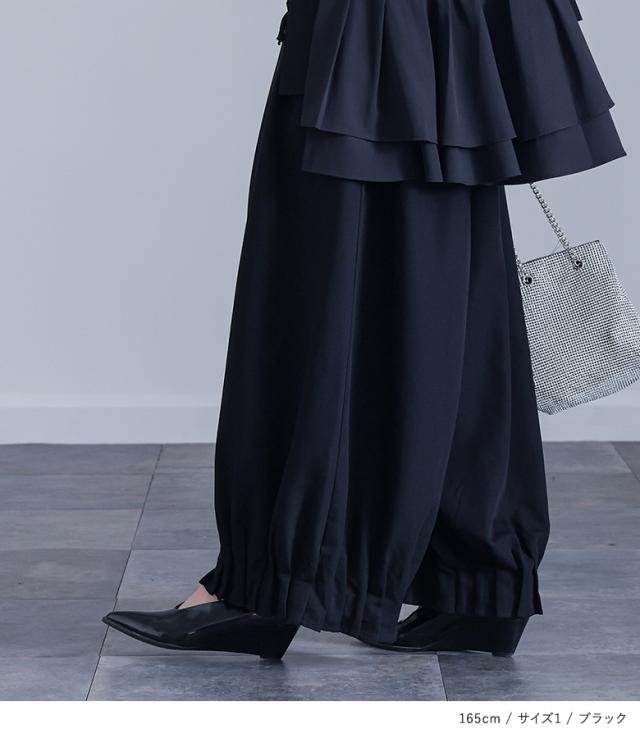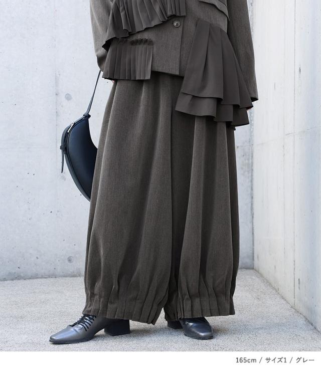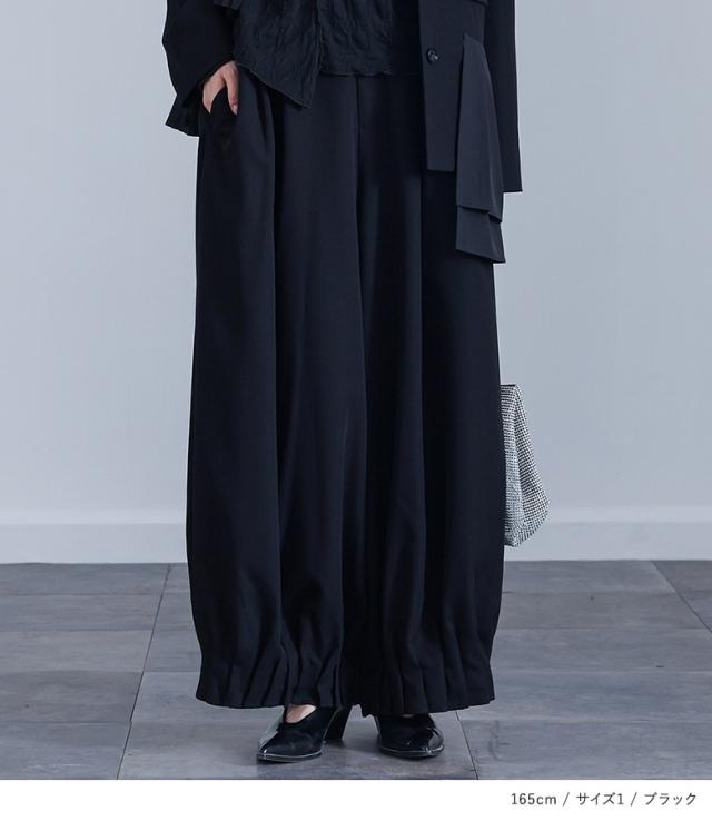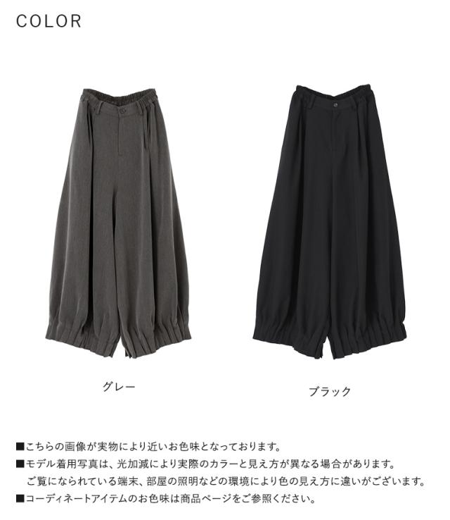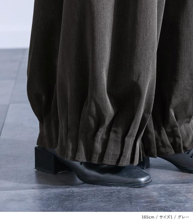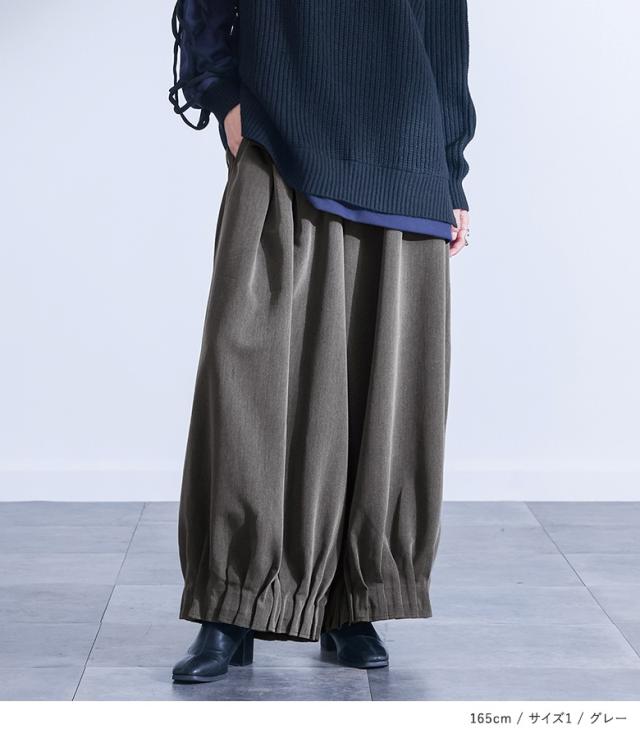 <冬新作>『裾ゴムタックワイドパンツ』【メール便不可】【20】[ワイドパンツ ロング レディース ボトムス セットアップ対応 コクーンシルエット タック ウエストゴム 体型カバー オケージョン 秋 冬 春 夏]