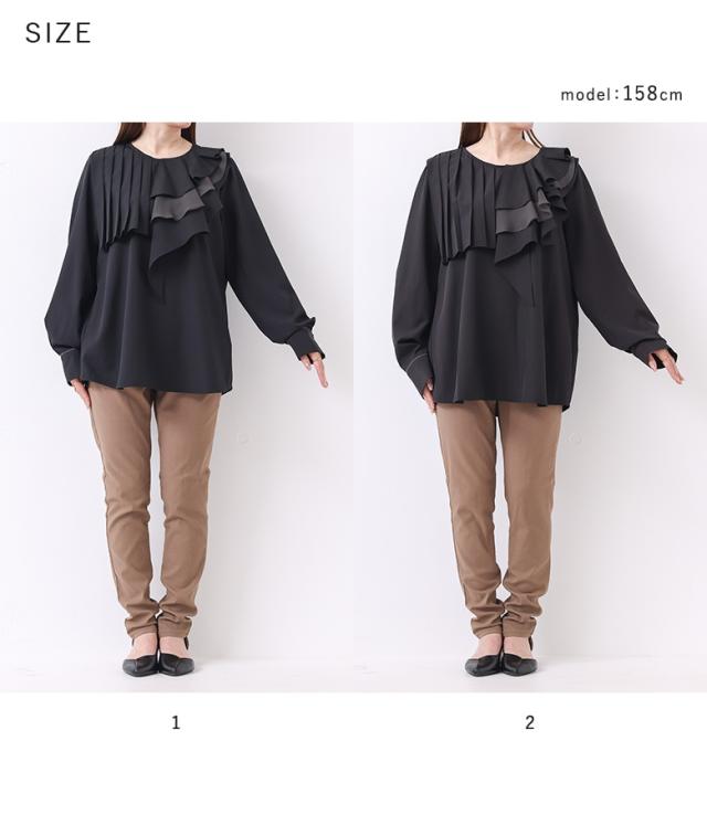 <冬新作>『異素材配色プリーツブラウス』※メール便可※【10】[ブラウス 長袖 レディース トップス フリル プリーツ 異素材 シアー 配色 アシンメトリー アシメ プルオーバー オケージョン 秋 冬 春 夏]