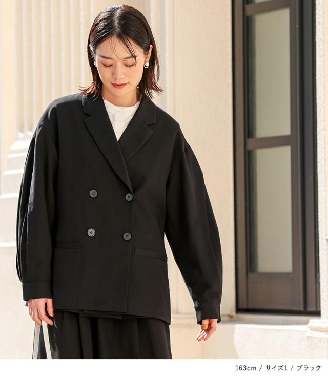 <冬新作>『袖タックテーラードジャケット』【メール便不可】【20】[ジャケット レディース アウター 長袖 テーラードジャケット ボリューム袖 ショート丈 羽織 タック セットアップ オケージョン 春 夏 秋 冬]
