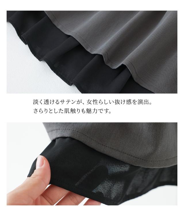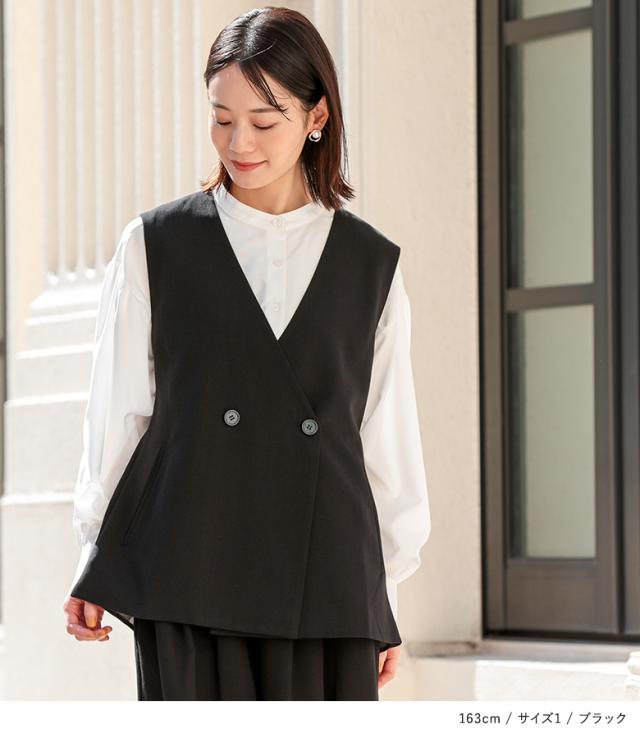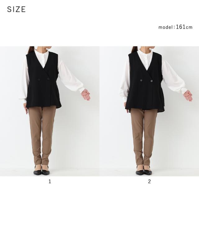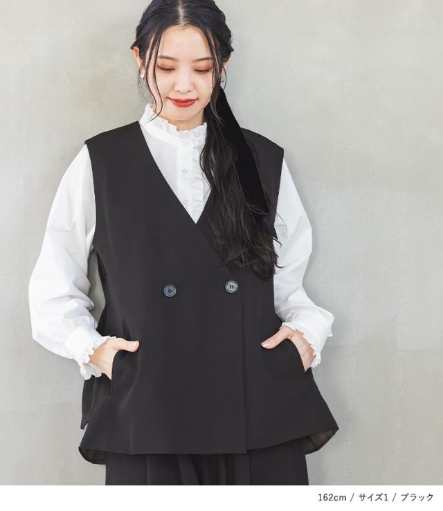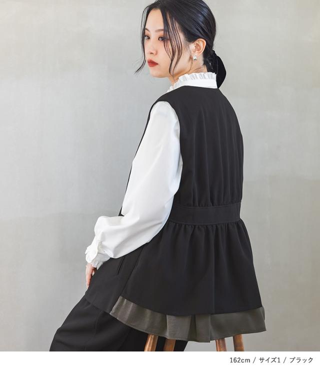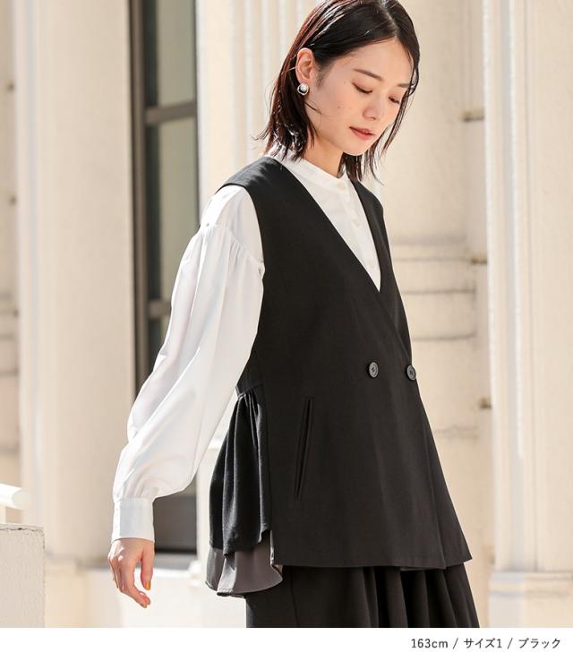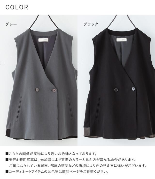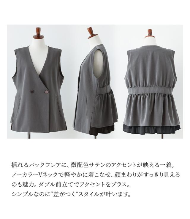 <冬新作>『バックフレアジレ』※メール便可※【10】[ジレ ベスト レディース アウター トップス 羽織 ノーカラー Vネック バックフレア サテン 裏地付き ポケット セットアップ オケージョン 秋 冬 春 夏]