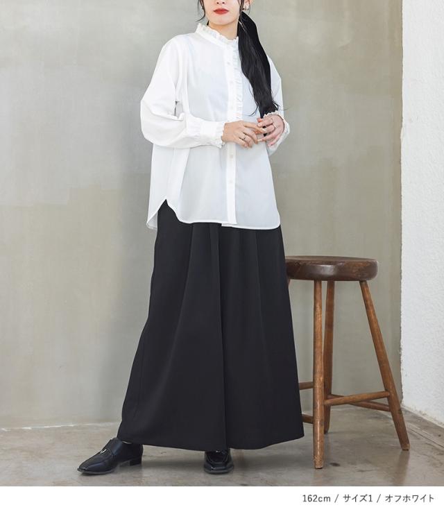 ブラウス 長袖 レディース トップス シャツ フリル ギャザー レイヤード 重ね着 お尻が隠れる オケージョン 春 夏 秋 冬 【TP】 ボタンシャツ 前開きシャツ 襟付きシャツ スタンドネック 立ち襟 n'OrLABEL ノアールレーベル 大人女子 大人可愛い お洒落可愛い 大人カジュアル ベーシック ラフ オフィスカジュアル 上品 きれいめ ナチュラル ホワイト 白 オフホワイト ミディ丈 ミドル丈 チュニック丈 無地 おうちで洗える オールシーズン カジュアル クラシカル シンプル キレカジ フェミニン ガーリー ゆったり ゆる 楽ちん S M L LL 3L XL ぽっちゃり 体型カバー 大きいサイズ プラスサイズ 10代 20代 30代 40代 50代 60代 低身長 高身長 女子会 オフィス 通勤 通学 お買い物 お出掛け 旅行 おしゃれ お洒落 トレンド 流行 パーティー 二次会 結婚式 入学式 卒業式 フォーマル セレモニー 謝恩会 学校行事 お宮参り 七五三 ママ 母 母親 ママスーツ osharewalker オシャレウォーカー おしゃれうぉーかー ブラック 黒[ID]15to0p9[n'OrLABELギャザーフリルブラウス]