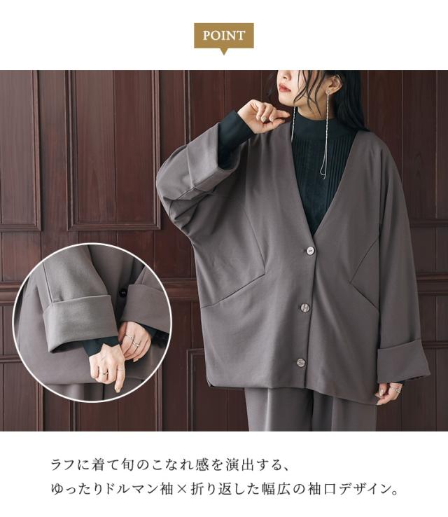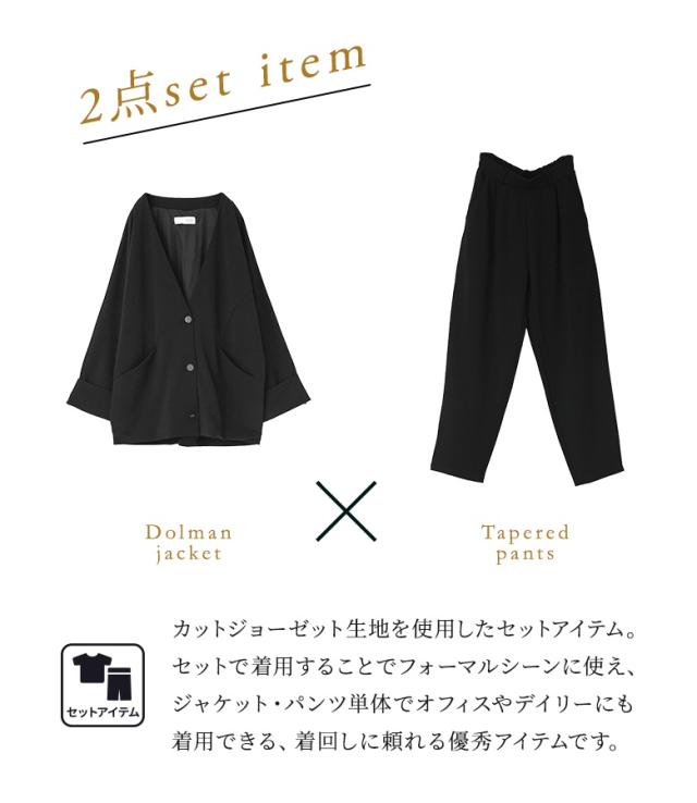 <冬新作>【送料無料】『カットジョーゼットドルマンジャケット&テーパードパンツセットアップ』【メール便不可】【30】[セットアップ レディース アウター ボトムス ドルマン ジャケット 長袖 テーパードパンツ ロング丈 オケージョン 秋 冬 春 夏]