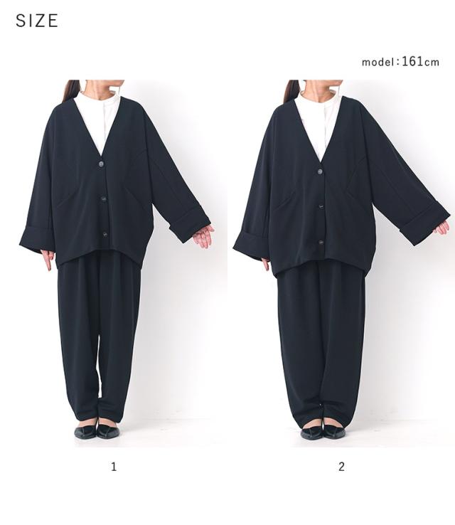 | staff:AB/155.5cm B83 W67 H88 【普段着用】 Tops: M Bottoms:M | 【1】 ◆ジャケット 袖丈:手の甲が隠れる位 着丈:ヒップがちょうど隠れる位 ◆パンツ 着丈(ウエスト穿き):かかとから3cm余る位 ウエスト:ややゆったり 全体的にゆったりと楽に着用できます。 私の場合は、1を選びます。 |