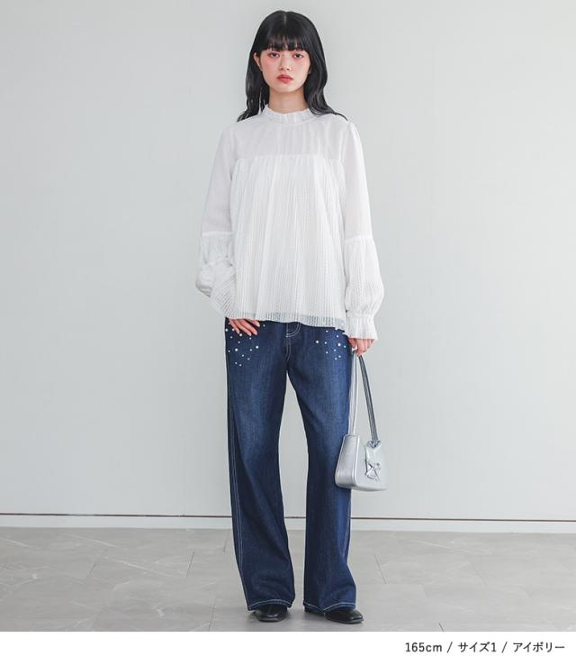 ブラウス 長袖 レディース トップス プリーツ ドット柄 チュール 透け感 シアー 裏地付き スタンドカラー オケージョン 春 夏 秋 冬 【TP】 シャツ プルオーバー ホワイト 白 アイボリー ショート丈 ミディ丈 ミドル丈 ドットチュール フロッキードット プリーツチュール おうちで洗える オールシーズン カジュアル レトロ クラシカル シンプル ナチュラル キレカジ フェミニン ガーリー ゆったり ゆる 楽ちん S M L LL 3L XL ぽっちゃり 体型カバー 大きいサイズ プラスサイズ 10代 20代 30代 40代 50代 60代 低身長 高身長 女子会 オフィス 通勤 通学 お買い物 お出掛け 旅行 おしゃれ お洒落 トレンド 流行 パーティー 二次会 結婚式 入学式 卒業式 フォーマル セレモニー 謝恩会 学校行事 お宮参り 七五三 ママ 母 母親 somari imagination ソマリイマジネーション 可愛い系 大人女子 大人可愛い お洒落可愛い 大人カジュアル 上品 きれいめ osharewalker オシャレウォーカー おしゃれうぉーかー ブラック 黒[ID]15to0pi[somari imaginationドットチュールブラウス]