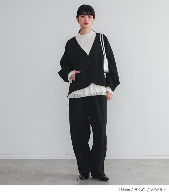 ■デザイン 細やかなプリーツを施したドットチュールと、フロッキードットを合わせた華やかなブラウス。 トーンを揃えたドット柄なので取り入れやすく、上品な雰囲気に仕上がります。 身頃には全面裏地付きで透け感の心配も不要。 襟元はプリーツチュールを重ねたスタンドカラー風のデザインで、軽やかな抜け感をプラスします。 オケージョンから日常使いまで幅広く活躍する優秀な一枚です。 ■コーディネート オケージョンシーンにはもちろん、デイリーのきれいめスタイルにも活躍。 一枚で着映えする、ワードローブに加えておきたい万能アイテムです。 ■製品についての注意書き この製品はプリーツ加工を施していますが永久的なものではなく、着用や水洗い、クリーニングを繰り返す事によりプリーツが消失する恐れがあります。 洗濯はネットを使用し、脱水は短時間で処理し直ちに干してください。 染色の特質上、発汗や摩擦により色落ちすることがありますのでご注意ください。 また、着用中の摩擦により色移りしやすい特性がありますので、白や淡色との組合わせはご遠慮ください。 他の製品に色が移ることがありますので、一緒に洗わず単独で洗ってください。 ご了承の上、ご購入いただきますようお願いいたします。 |