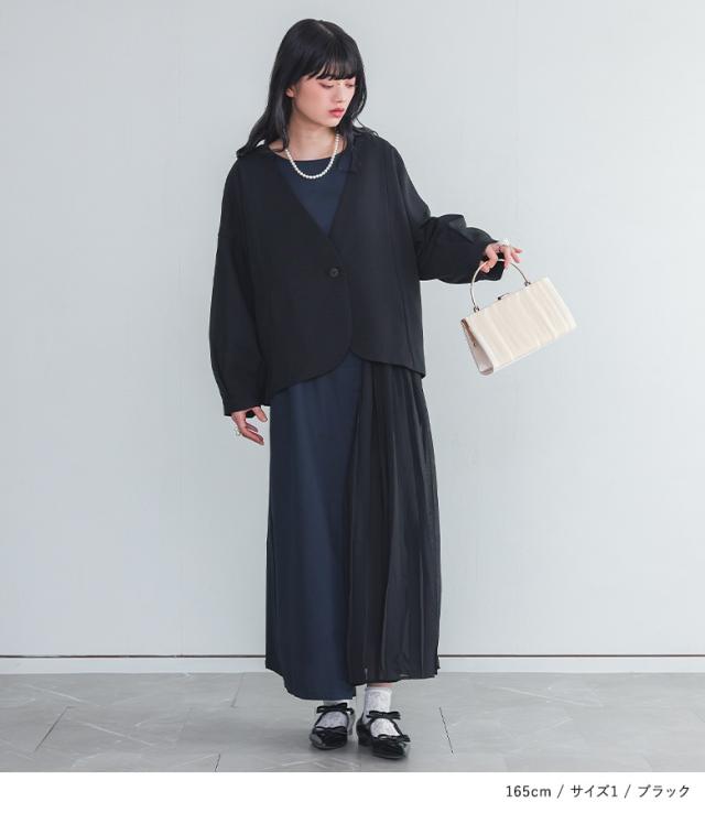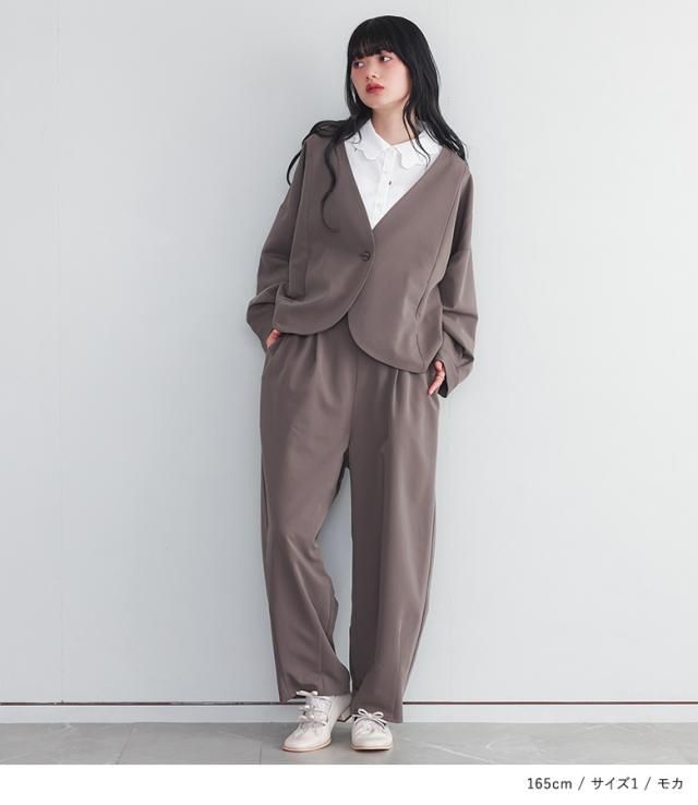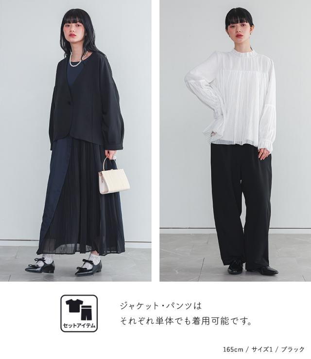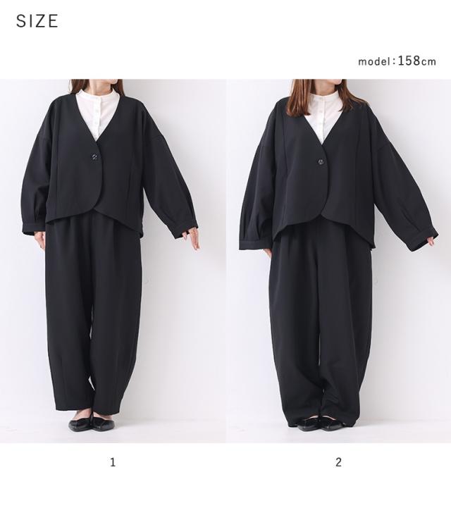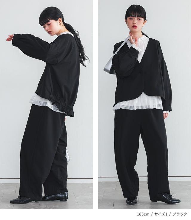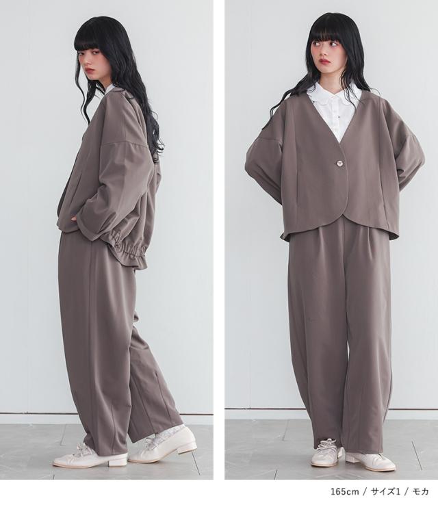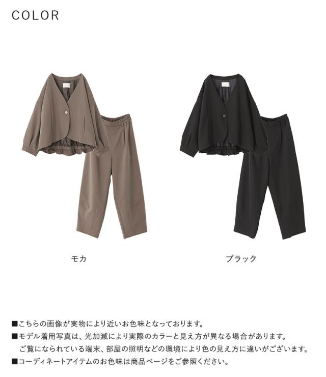 【送料無料】<冬新作>『ノーカラージャケットコクーンパンツセットアップ』【メール便不可】【30】[セットアップ レディース アウター ボトムス ジャケット コクーンパンツ 2点セット オケージョン 秋 冬 春 夏]