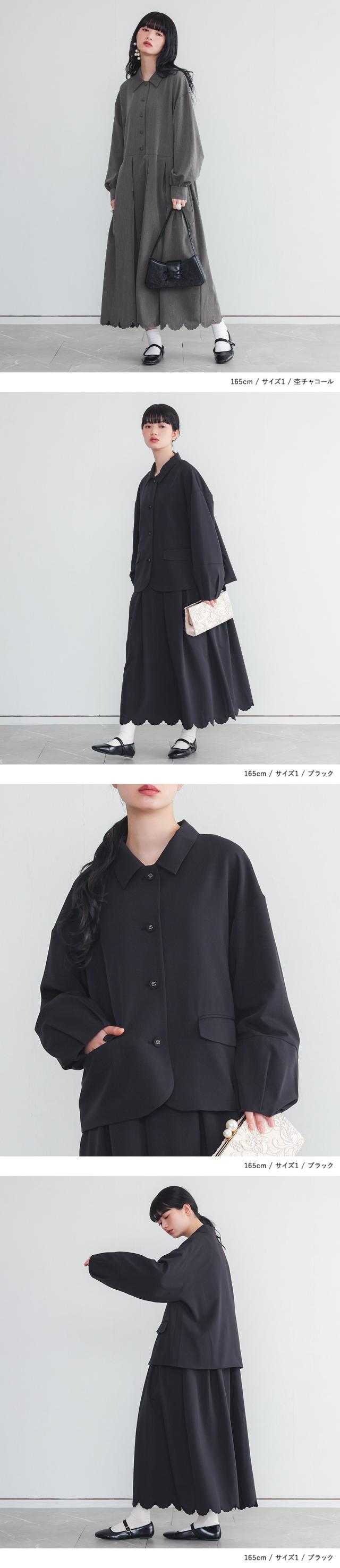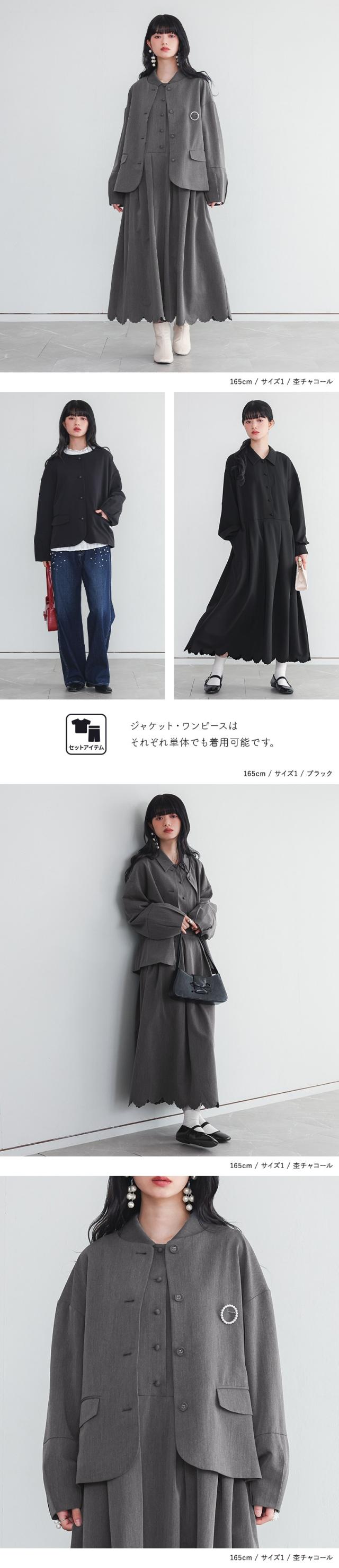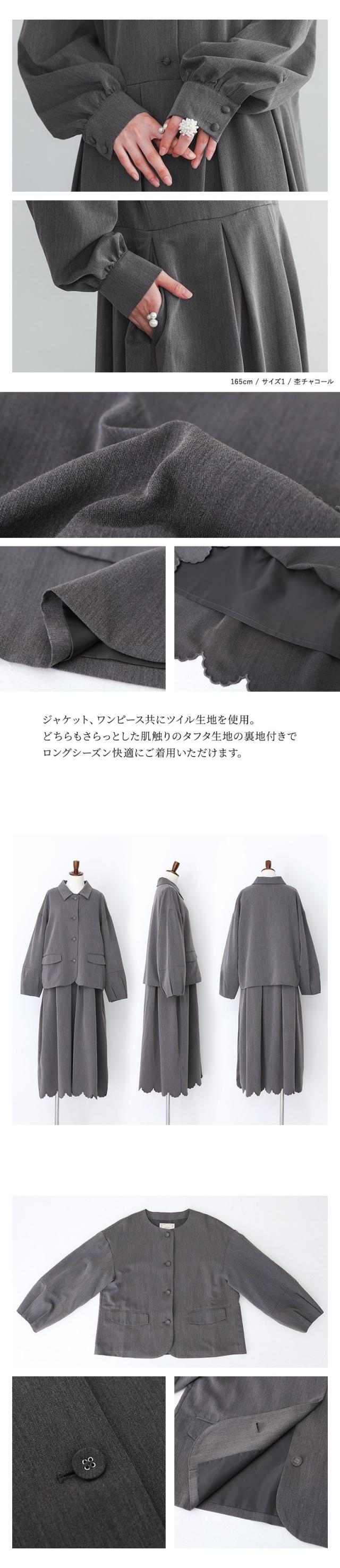 セットアップ レディース ドレス アウター ジャケット ワンピース 長袖 ランタンスリーブ スカラップ 刺繍 オケージョン 春 夏 秋 冬 上下セット 【TP】 ライトアウター 羽織り ロングワンピース マキシワンピース オケージョンワンピース 襟付き 無地 ポケット おうちで洗える 裏地付き オールシーズン フォーマル レトロ クラシカル シンプル キレカジ フェミニン ガーリー ゆったり ゆる 楽ちん S M L LL 3L XL ぽっちゃり 体型カバー 大きいサイズ プラスサイズ 10代 20代 30代 40代 50代 60代 低身長 高身長 女子会 オフィス 通勤 通学 お買い物 お出掛け おしゃれ お洒落 トレンド 流行 パーティー 二次会 結婚式 入学式 卒業式 セレモニー 謝恩会 学校行事 お宮参り 七五三 ママ 母 母親 ママスーツ somari imagination ソマリイマジネーション 可愛い系 大人カジュアル ナチュラル 上品 きれいめ osharewalker オシャレウォーカー おしゃれうぉーかー グレー 灰色 チャコールグレー チャコール ブラック 黒[ID]15do0pb[somari imaginationランタンスリーブジャケット裾スカラップワンピースセットアップ]