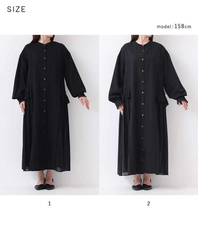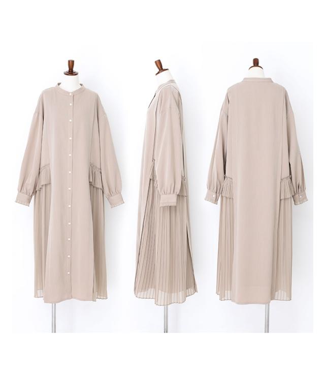 【送料無料】<冬新作>『プリーツレイヤードワンピース』【メール便不可】【20】[ワンピース ロング レディース シャツワンピース 長袖 バンドカラー シフォン プリーツ オケージョン 秋 冬 春 夏]