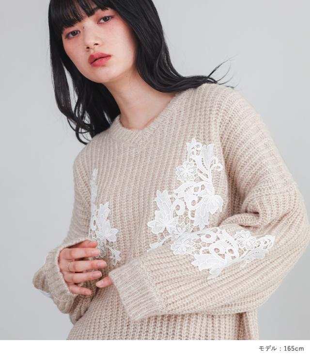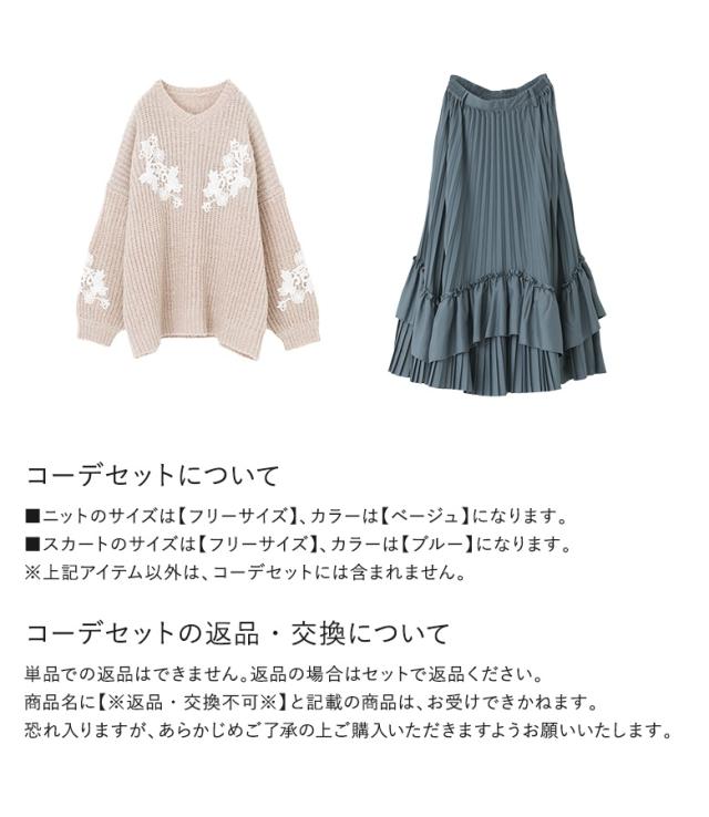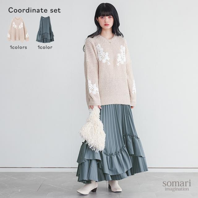 【送料無料】『モチーフレースモヘヤタッチ畦ニット×ティアードプリーツスカートコーデ2点SET』【メール便不可】【80】[2点コーデセット 2025 レディース ニット 長袖 トップス セーター スカート ロング ボトムス]