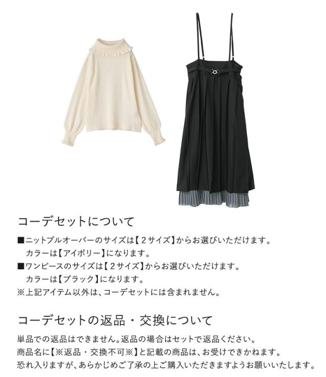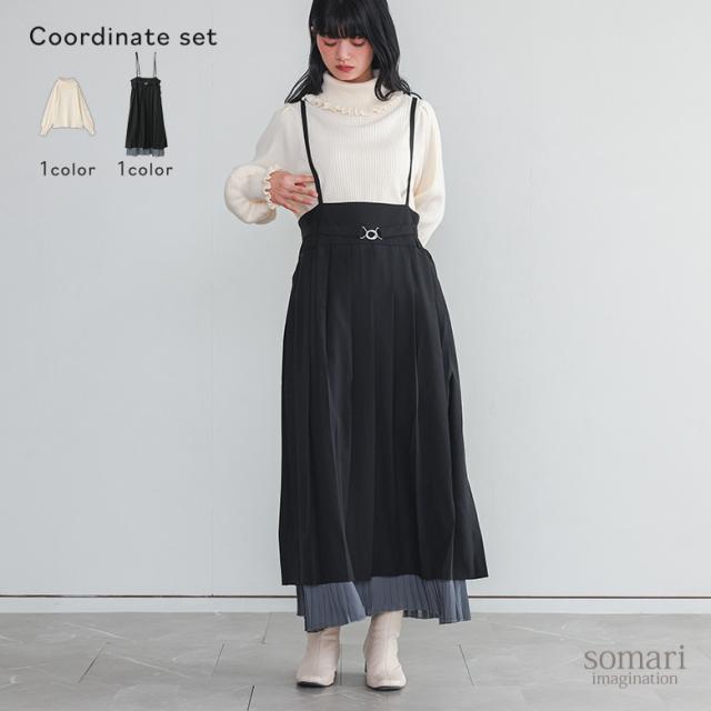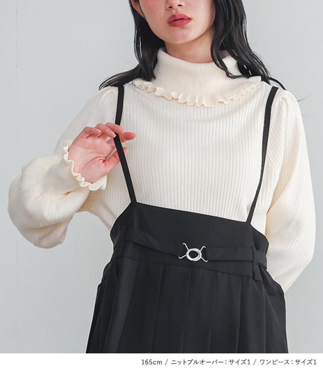 【送料無料】『プリーツキャミワンピース×フリルタートルネックニットプルオーバーコーデ2点SET』【メール便不可】【60】[2点コーデセット 2025 レディース ワンピース ドレス ロング丈 ニット 長袖 タートルネック]