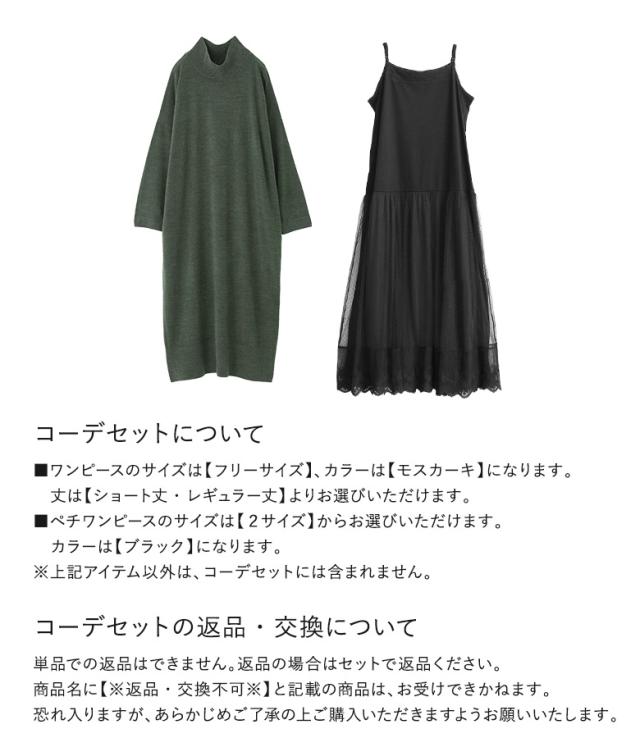 【送料無料】『選べる着丈ニットワンピース×贅沢レースロングペチワンピースコーデ2点SET』【メール便不可】【50】[2点コーデセット 2025 レディース ニットワンピース ワンピース ロングワンピース ペチワンピース]