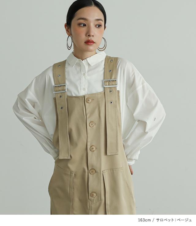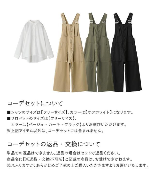 【送料無料】『フロント釦サロペット×バックボタンスリットシャツコーデ2点SET』【メール便不可】【25】[2点コーデセット 2025 レディース サロペット パンツ ボトムス シャツ・ブラウス プルオーバー ボタンシャツ]