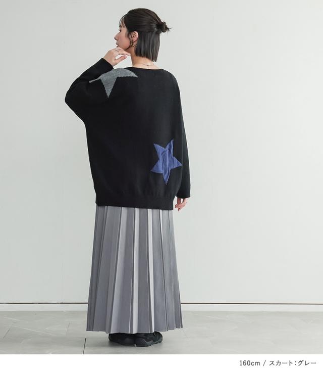 ニット 長袖 レディース トップス セーター クルーネック ジャカード ジャガード 星柄 配色 アシンメトリー お尻が隠れる 秋 冬 プルオーバー 大人女子 大人カジュアル ベーシック ニュアンス エフォートレス オフィスカジュアル 上品 きれいめ ナチュラル ミディ丈 ミドル丈 ドロップショルダー ビッグシルエット オーバーサイズ アシメ 星 スター レイヤード 重ね着 おうちで洗える カジュアル シンプル キレカジ フェミニン 可愛い系 ゆったり ゆる 楽ちん Sサイズ Mサイズ Lサイズ LLサイズ 3Lサイズ XLサイズ フリーサイズ ぽっちゃり 体型カバー 大きいサイズ プラスサイズ 10代 20代 30代 40代 50代 60代 スカート ボトムス ロング丈 プリーツスカート ボンディング 裏地付き ハリ感 ウエストゴム ロングスカート マキシスカート マキシ丈 プリーツ 無地 立体感 モード マニッシュ ガーリー 低身長 高身長 グレー ブラック 黒 202512 2点セット プレゼント 福袋 コーディネートセット コーデセット 中身が見える福袋 上下セット ギフトセット[ID]14co0u9