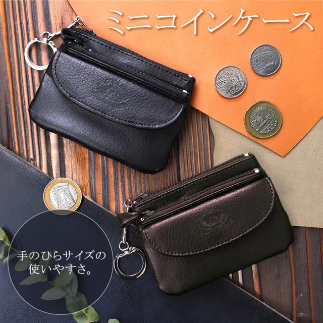 商品カテゴリ:黒 茶 バッグ 小物 ブランド雑貨 財布 ケース コインケース 小銭入れ ミニ財布 ミニコインケース 牛床革 レザー 3ポケット ボタンポケット ファスナーポケット キーリング キーホルダー カードケース コンパクト財布 スリム財布 ギフト プレゼント