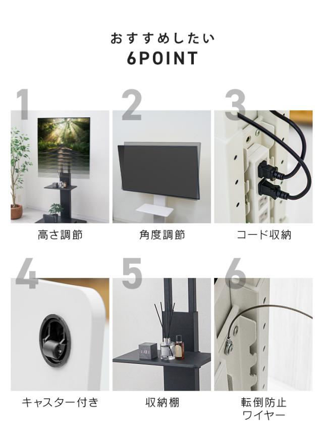 | 特徴 | ・スタンド式なので、従来のテレビ台より省スペース お部屋の角にも設置可能!