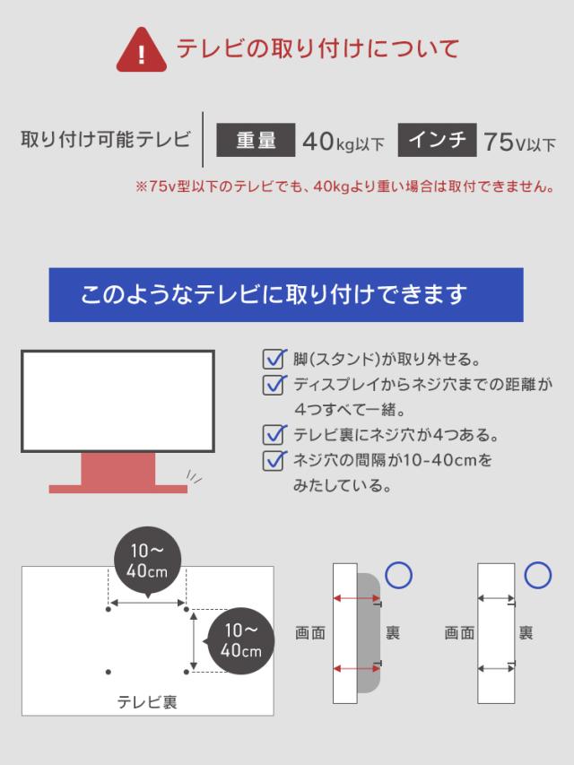 | 適用テレビサイズ | 37~75インチ VESA:400*400 600*400 |