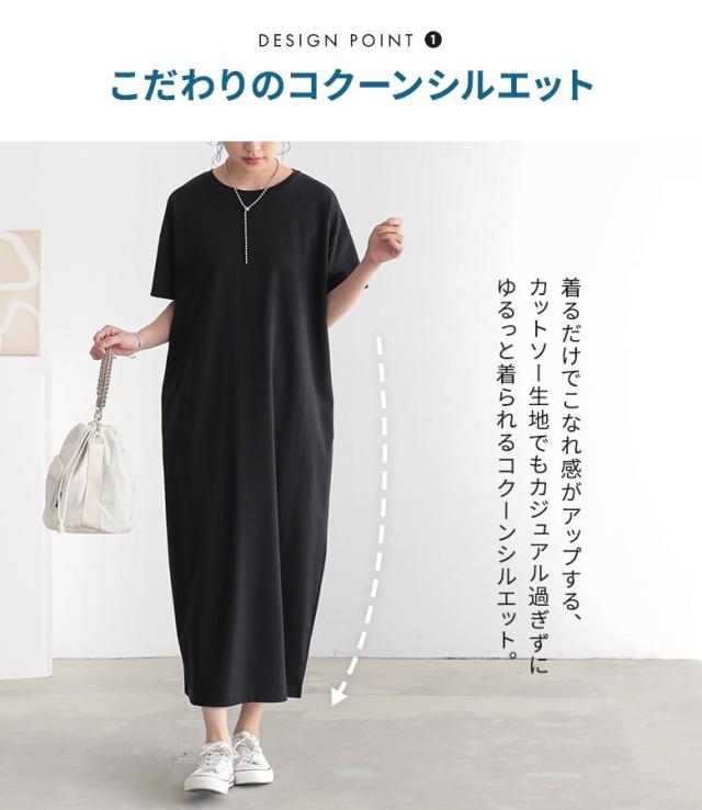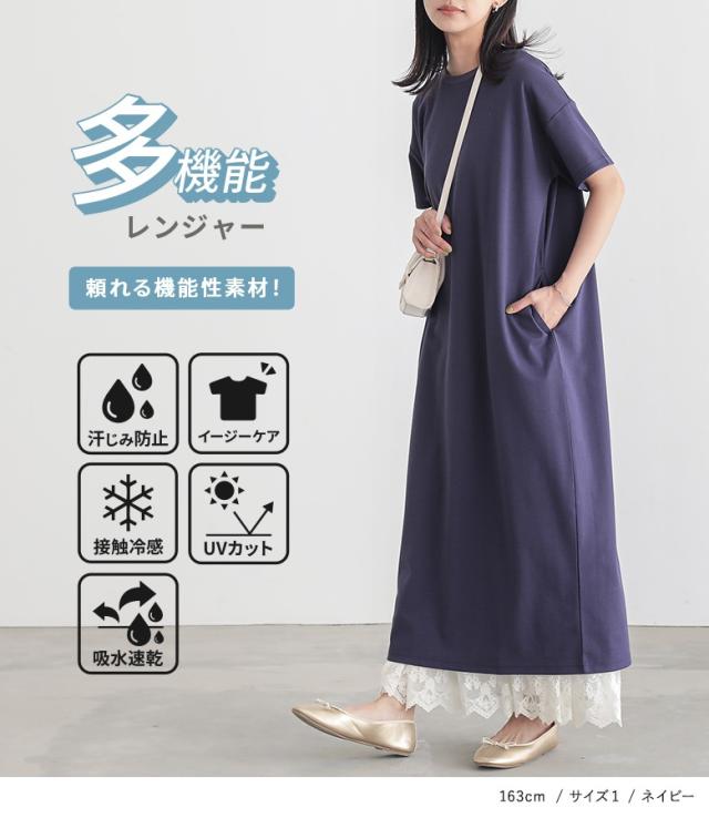 『多機能カットソーコクーンワンピース』【メール便不可】【20】[ワンピース レディース ドレス ロング丈 半袖 汗じみ防止 コクーン 接触冷感 UVカット 吸水速乾 イージーケア カットワンピ 春 夏]