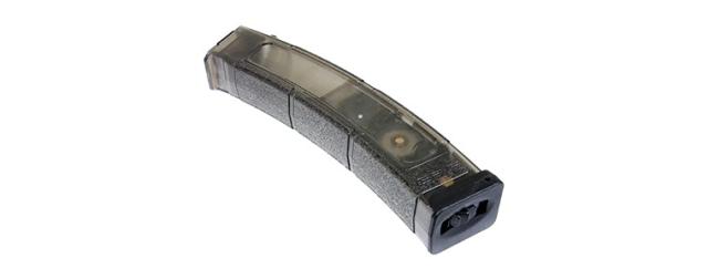 G&Gの電動ガンPKM9用200連多弾装マガジン、ゼンマイ巻き上げ式の多弾装マガジンだ。