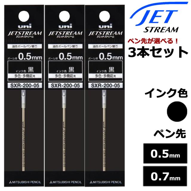 三菱鉛筆(UNI) ボールペン替芯 ジェットストリームインク SXR-200 選べる 3本セット ブラック 0.5mm 0.7mm