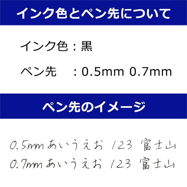 - ※ボールペンは、出荷前に筆記テストを行っております。ただし、インクが乾きすぐに書けない場合もございます。重ねたティッシュペーパーや、摩擦の強い紙などで破れない程度の力でペン先を転がすように円を書いて下さい。
