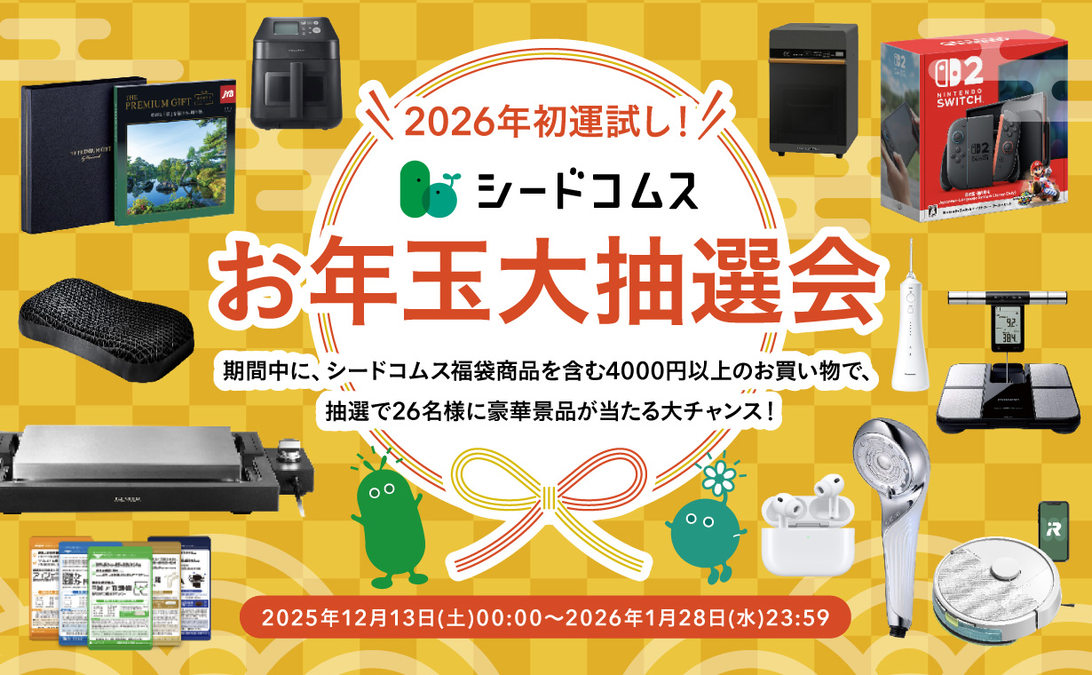 キャンペーン期間中に1回のご注文でシードコムス福袋商品を含む、4,000円以上の商品をご購入いただいた方